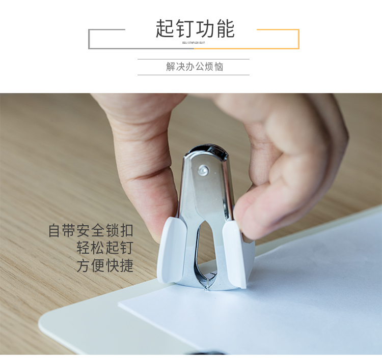 • 得力(deli)钢制耐用办公订书机套装(订书机+起钉器+订书钉) 适配12#钉 颜色随机0359