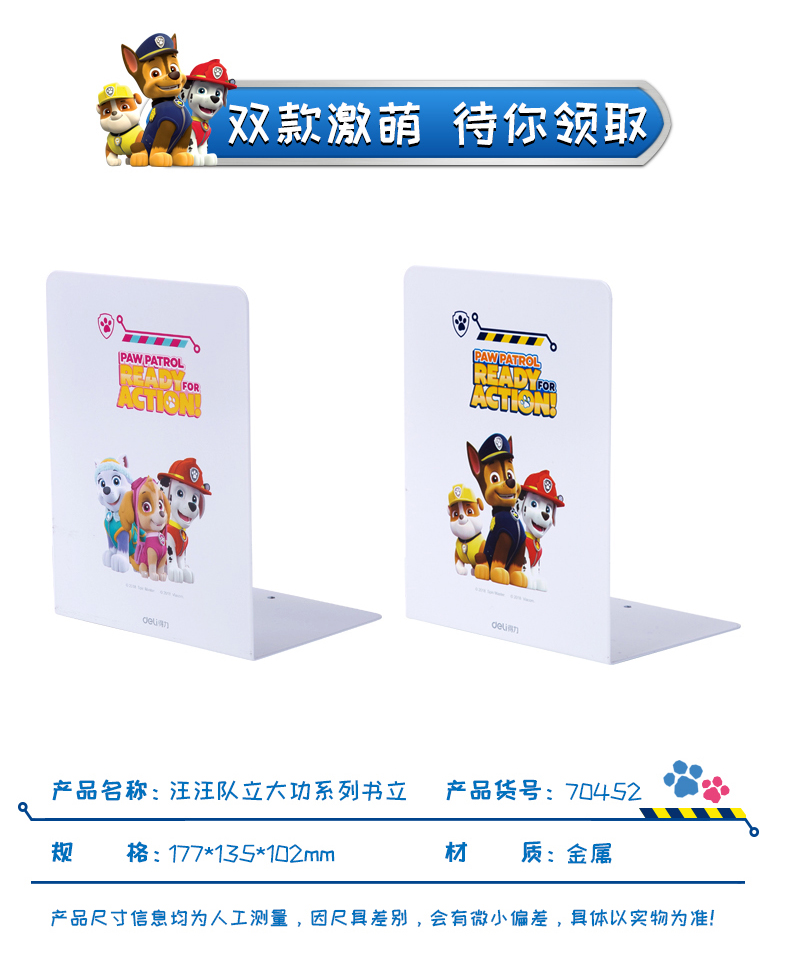 • 商品名称:得力(deli)汪汪队立大功系列学生金属书立课本整理架 颜色随机70452