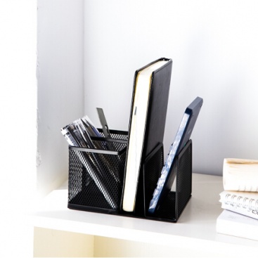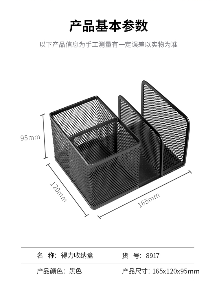 • 商品名称:得力(deli)书立+笔筒金属网格创意桌面收纳 黑色8917