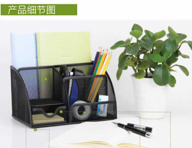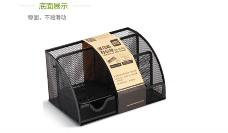 • 商品名称:得力(deli)创意金属网纹办公笔筒 多功能七格桌面收纳摆件 黑色9200