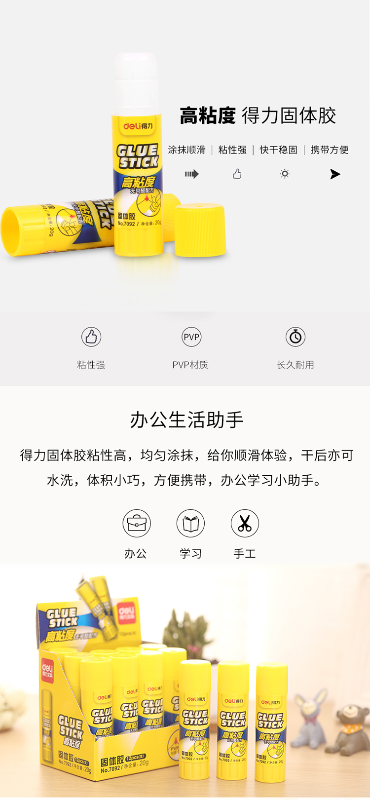 • 商品名称:得力(deli)20g高粘度PVP固体胶水 快干耐用胶棒 12支装 7092