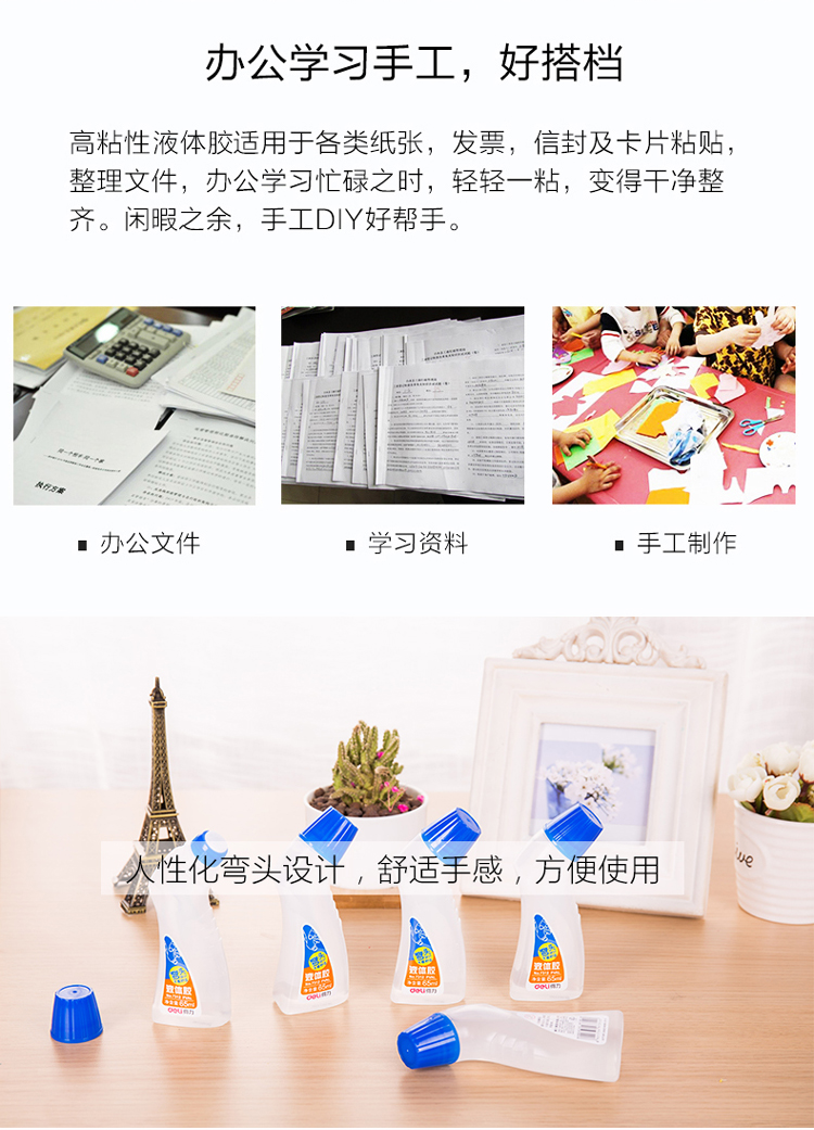 • 商品名称:得力(deli)65ml高粘度弯头液体胶水 12只装 蓝色7312