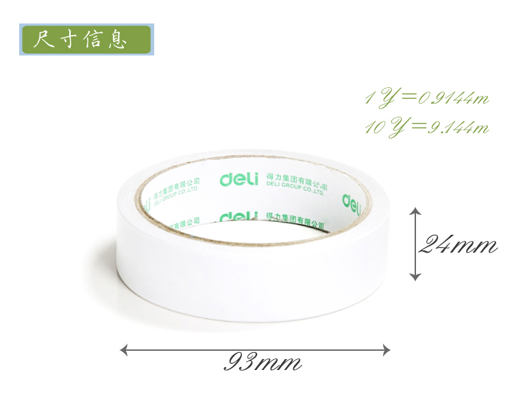• 商品名称:得力(deli)高粘性棉纸双面胶带24mm*10y(9.1m/卷) 12卷袋装 30403