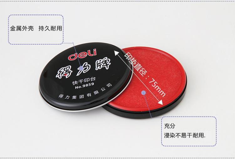 • 商品名称:得力(deli)φ89mm金属盖快干印台印泥 红色9859