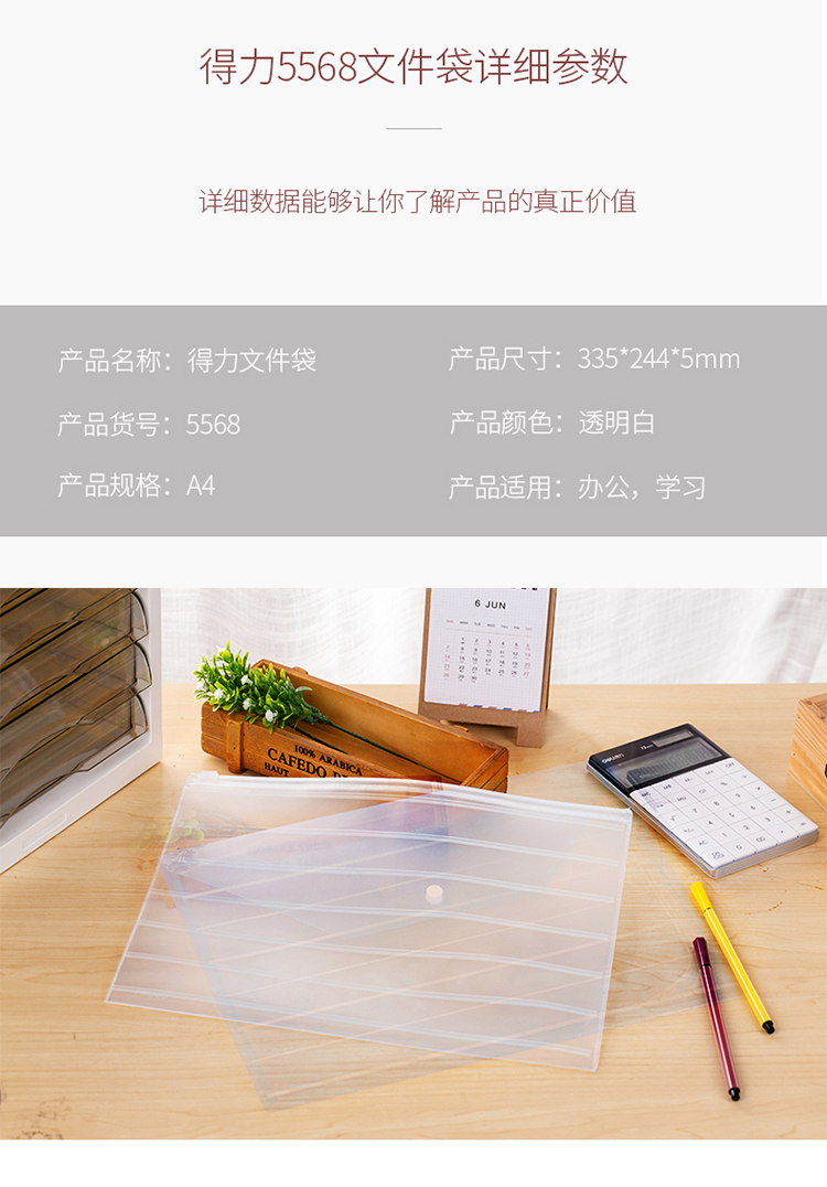 • 商品名称:得力(deli)10只/A4透明条纹拉链袋 磨砂感文件资料袋试卷袋5568
