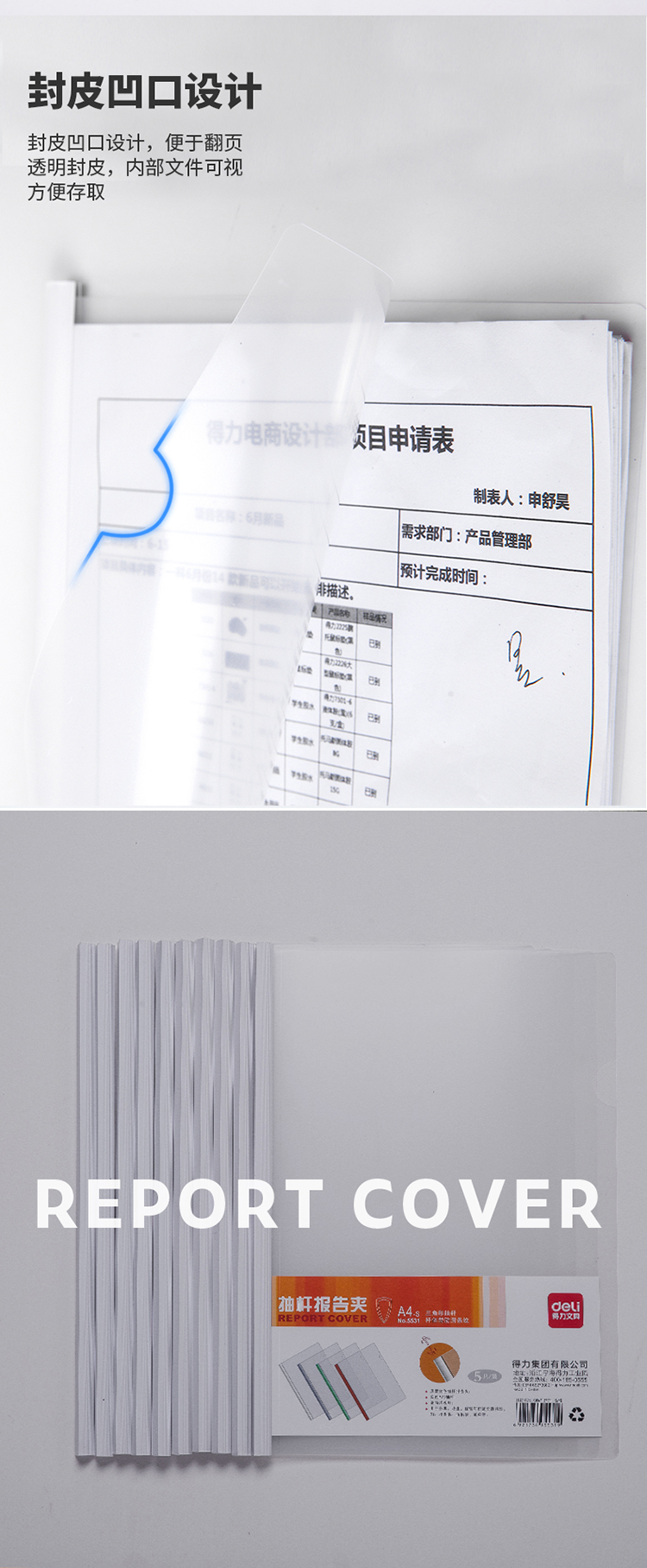 • 商品名称:得力(deli)33223 A4抽杆文件夹/得力加宽杆/报告夹套装 10个/袋 (白)