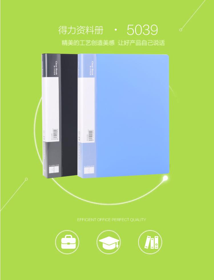 • 商品名称:得力(deli)5039 A4侧入式资料册/文件册/文件袋-60页 黑色