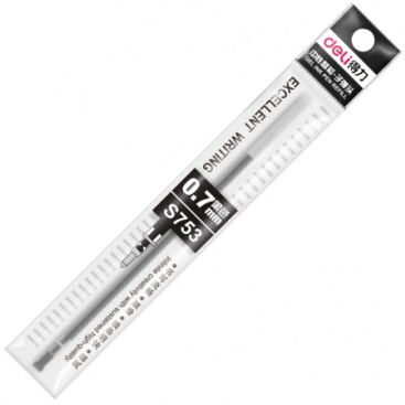 • 商品名称:得力(deli)0.7mm黑色子弹头中性笔笔芯 水笔签字笔替芯 20支/盒S753