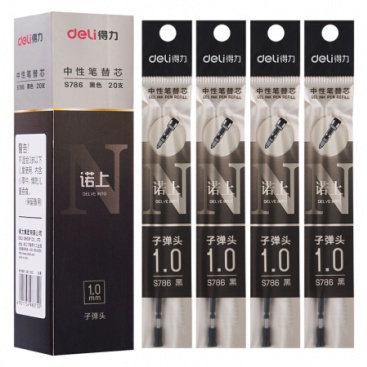 • 得力(deli)诺上1.0mm黑色中性笔笔芯 子弹头水性签字笔替芯 20支/盒S786