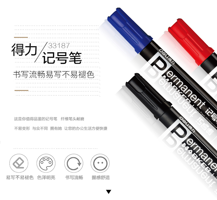 • 商品名称:得力(deli)速干油性记号笔大头笔记号笔 10支/盒(7黑2蓝1红)33187