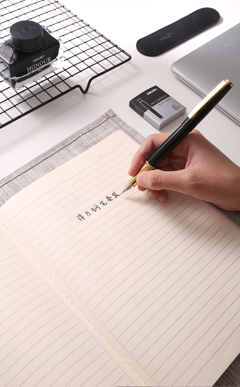 • 商品名称:得力(deli)卓然F尖钢笔套装 钢笔+墨水+笔袋+6支墨囊 33508