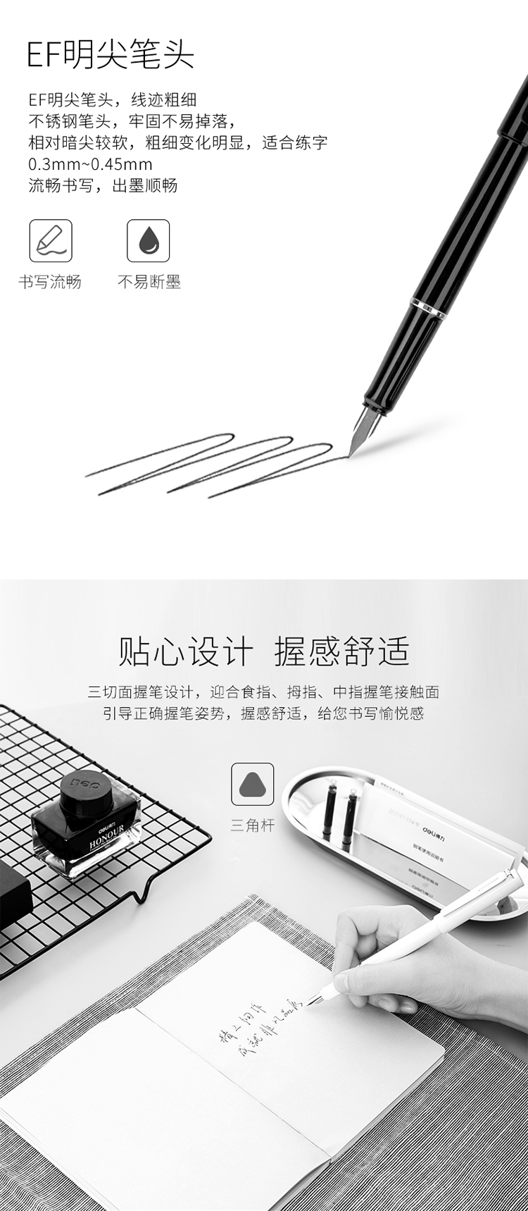• 商品名称:得力(deli)发现者时尚EF明尖钢笔墨水笔 办公商务签字笔白 S668EF