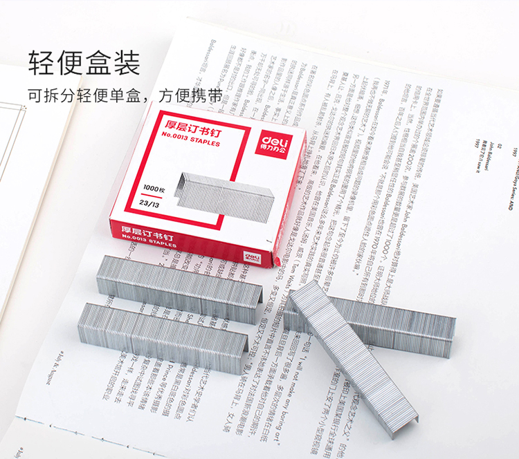 • 商品名称:得力(deli)23/13厚层订书钉/订书针 1000枚/盒 5盒装 0013