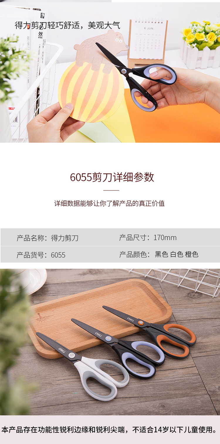 • 商品名称:得力(deli)170mm特氟龙材质防粘不锈钢剪刀 颜色随机6055