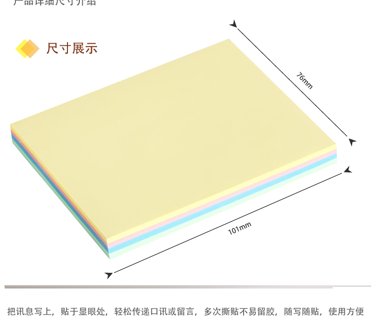 • 商品名称:得力(deli)100张4色大号便利贴便签纸 76*101mm便签本记事贴N次贴9083
