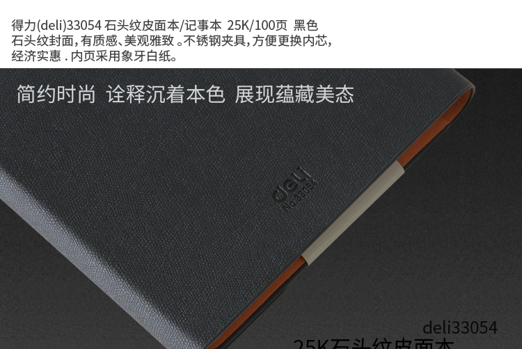 • 商品名称:得力(deli)25K100张高档领导款活页皮面本 商务办公记事本笔记本子 黑33054