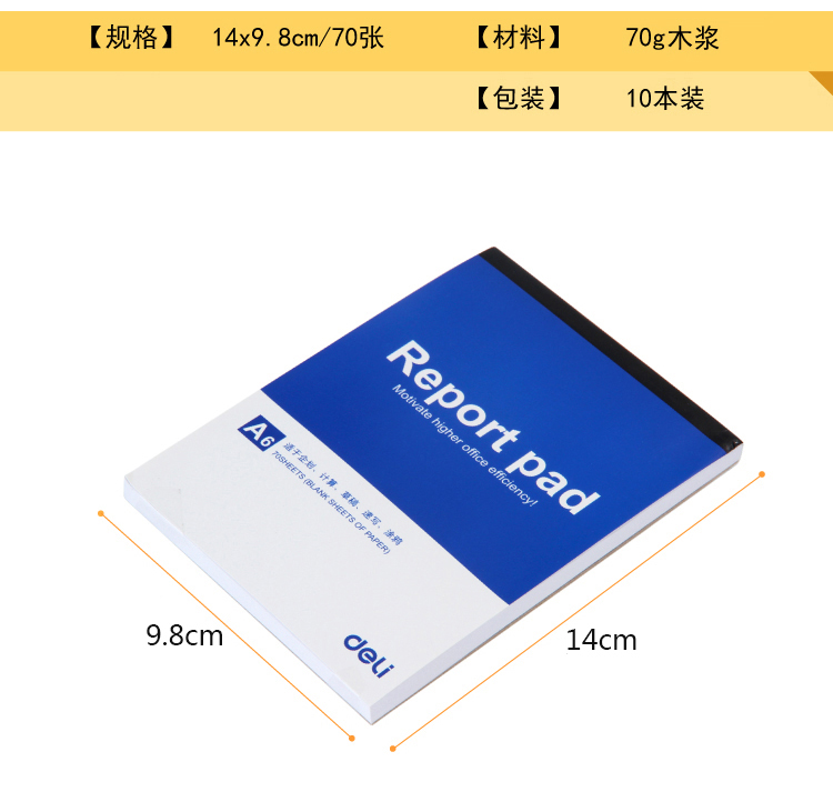 • 商品名称:得力(deli)10本A6/70张随身便签本便条本留言本草稿本草稿纸7713-10