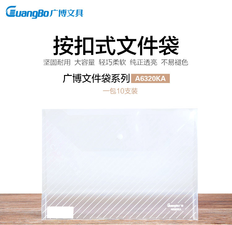 • 商品名称:广博(GuangBo)10只装A4透明文件袋/按扣档案袋/资料袋 A6320KA