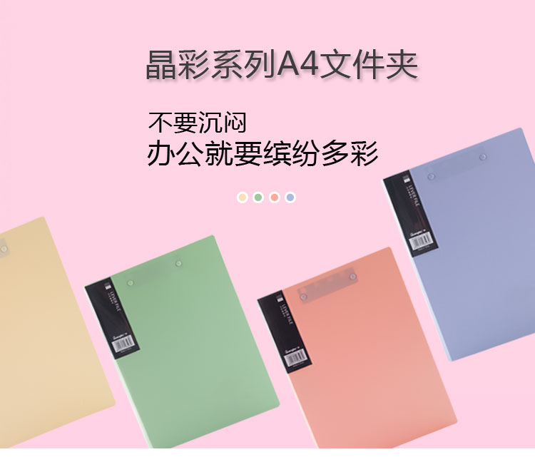 • 商品名称:广博(GuangBo)4只装4色A4双强力文件夹/彩色资料夹/档案夹 晶彩A9051