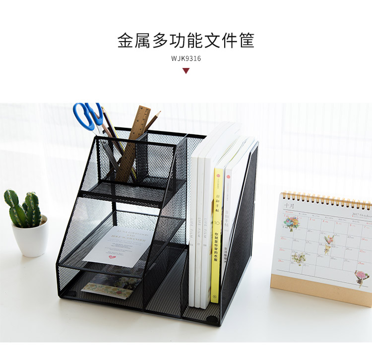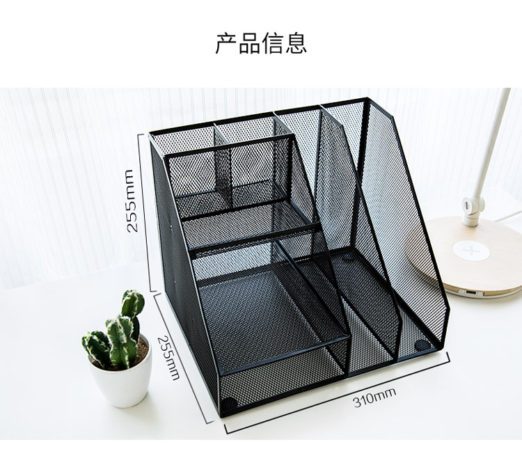 • 商品名称:广博(GuangBo)金属网状多功能文件框/文件筐/带笔筒收纳架办公用品 黑WZ9316