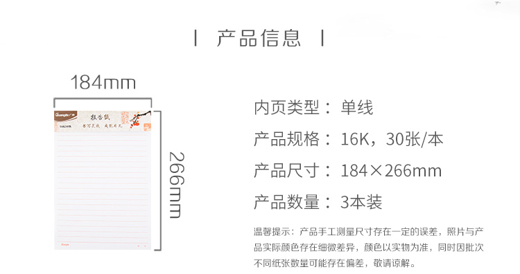 • 商品名称:广博(GuangBo)3本装16K30张单线信纸本子草稿本文稿纸 GB16218