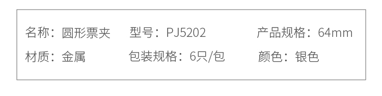 • 商品名称:广博(GuangBo)6只装64mm金属圆形票夹子票据夹PJ5202