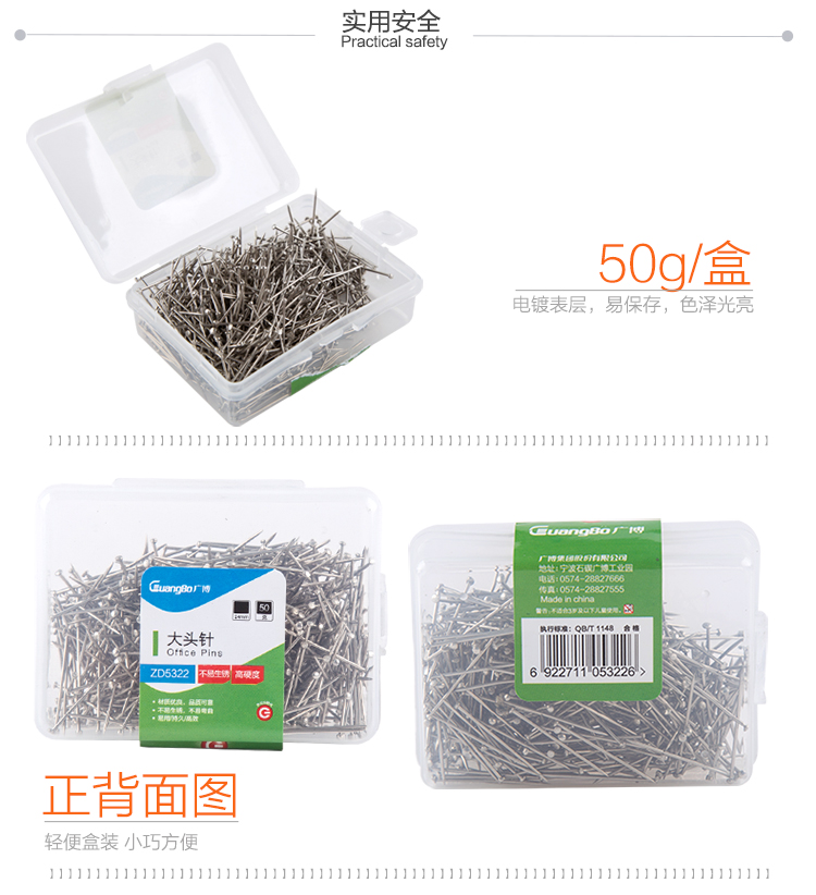 • 商品名称:广博(GuangBo)10盒装24mm塑料盒装大头针(50g/盒)办公用品ZD5322