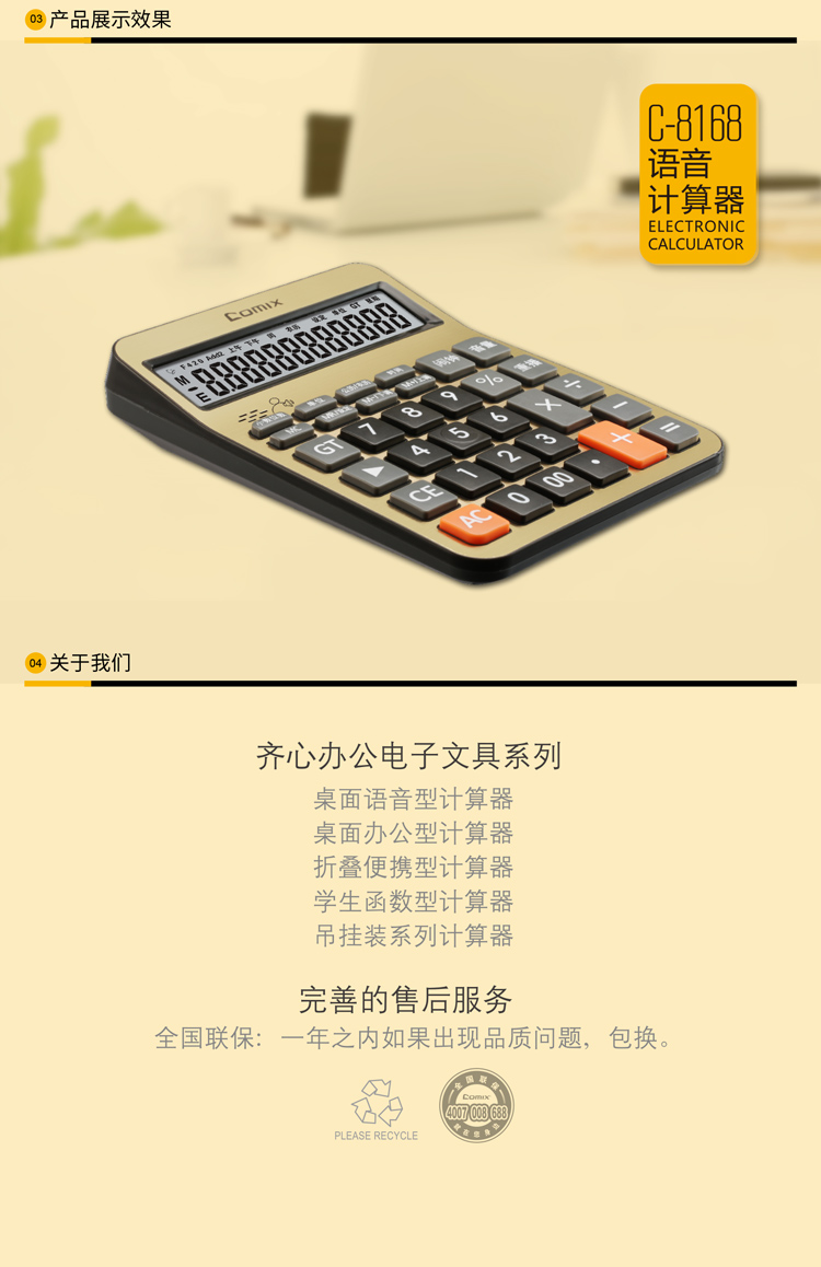 • 商品名称:齐心(Comix) 12位大台语音计算器 C-8168 金色