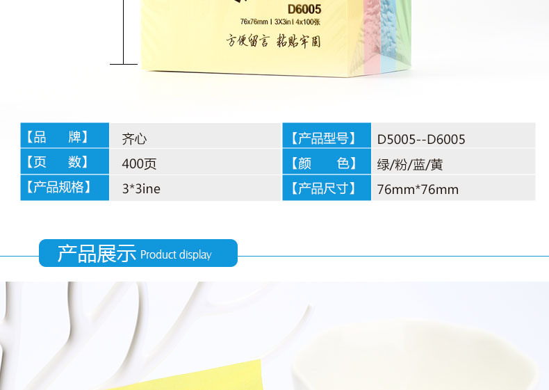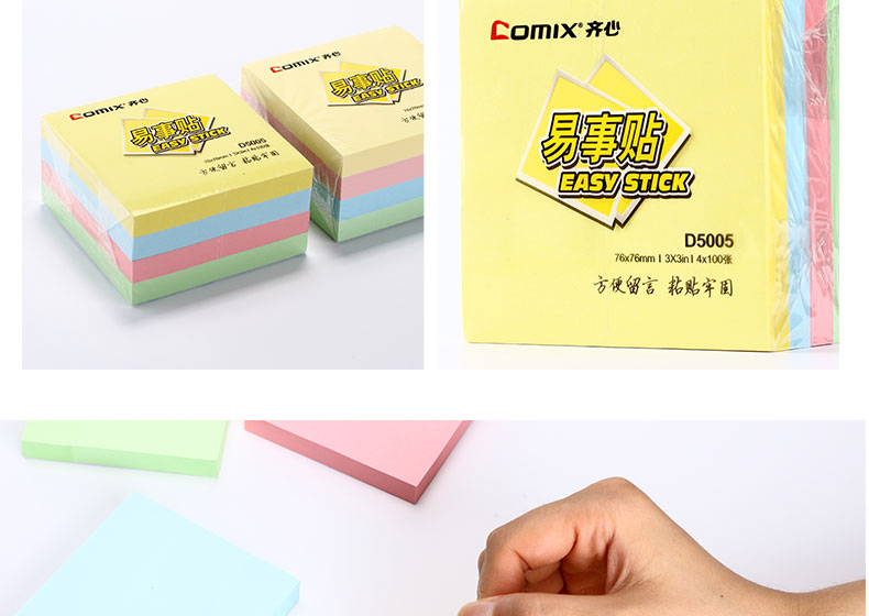 • 商品名称:齐心(Comix)4色装便利贴/便签纸/便签本/易事贴/百事贴(76x76mm) 办公文具 D6005