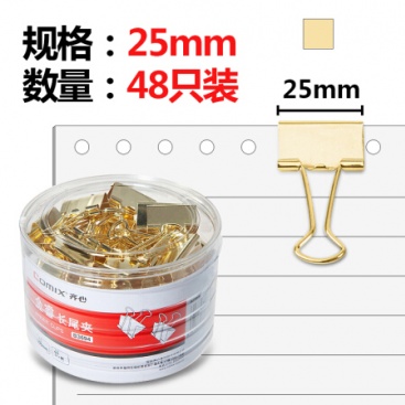 • 商品名称:齐心(COMIX)48只装25mm金色长尾夹/长尾票夹 办公文具B3694