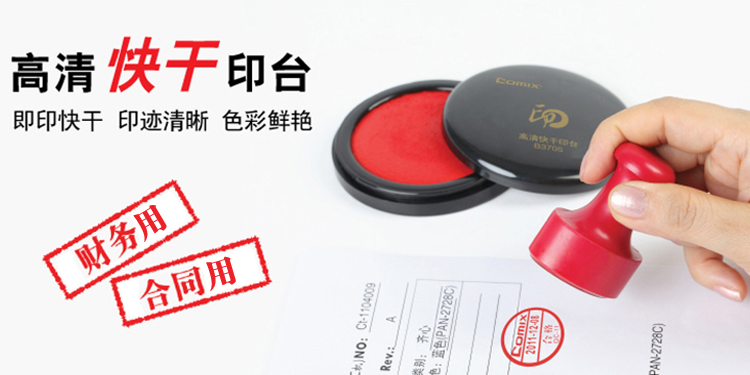 • 商品名称:齐心(Comix) 直径100mm大号圆形速干印台 红色印泥 办公文具B3706