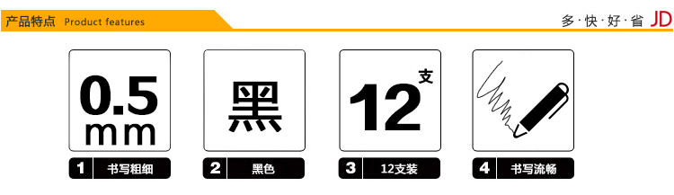 • 商品名称:晨光(M&G)0.5mm黑色直液式全针管中性笔签字笔水笔 12支/盒ARP50601