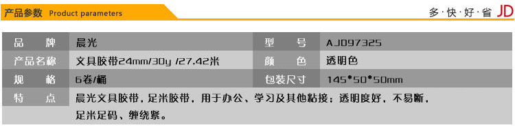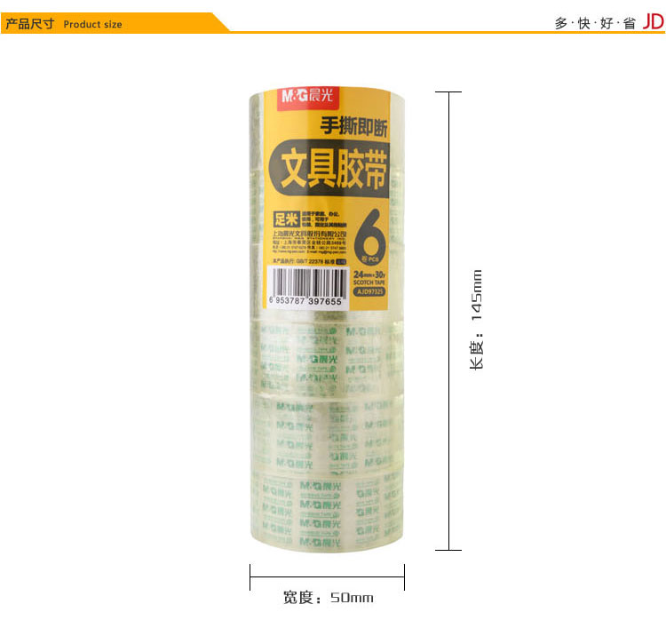 • 商品名称:晨光(M&G)24mm*30y高透易撕便携小胶带27.42m/卷 6卷装AJD97325