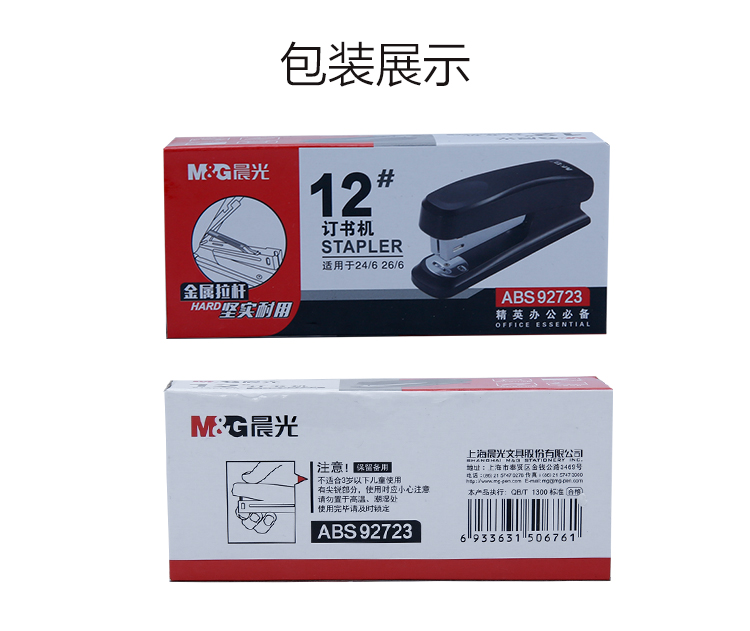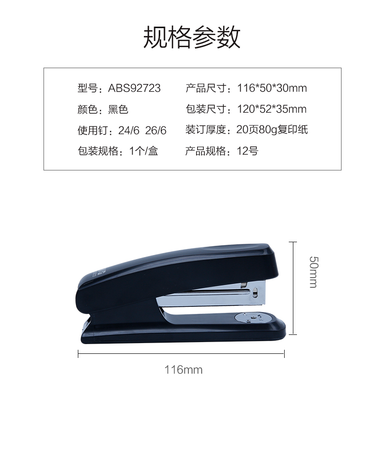 • 商品名称:晨光(M&G)12号黑色金属订书机可旋转针板订书器 单个装ABS92723