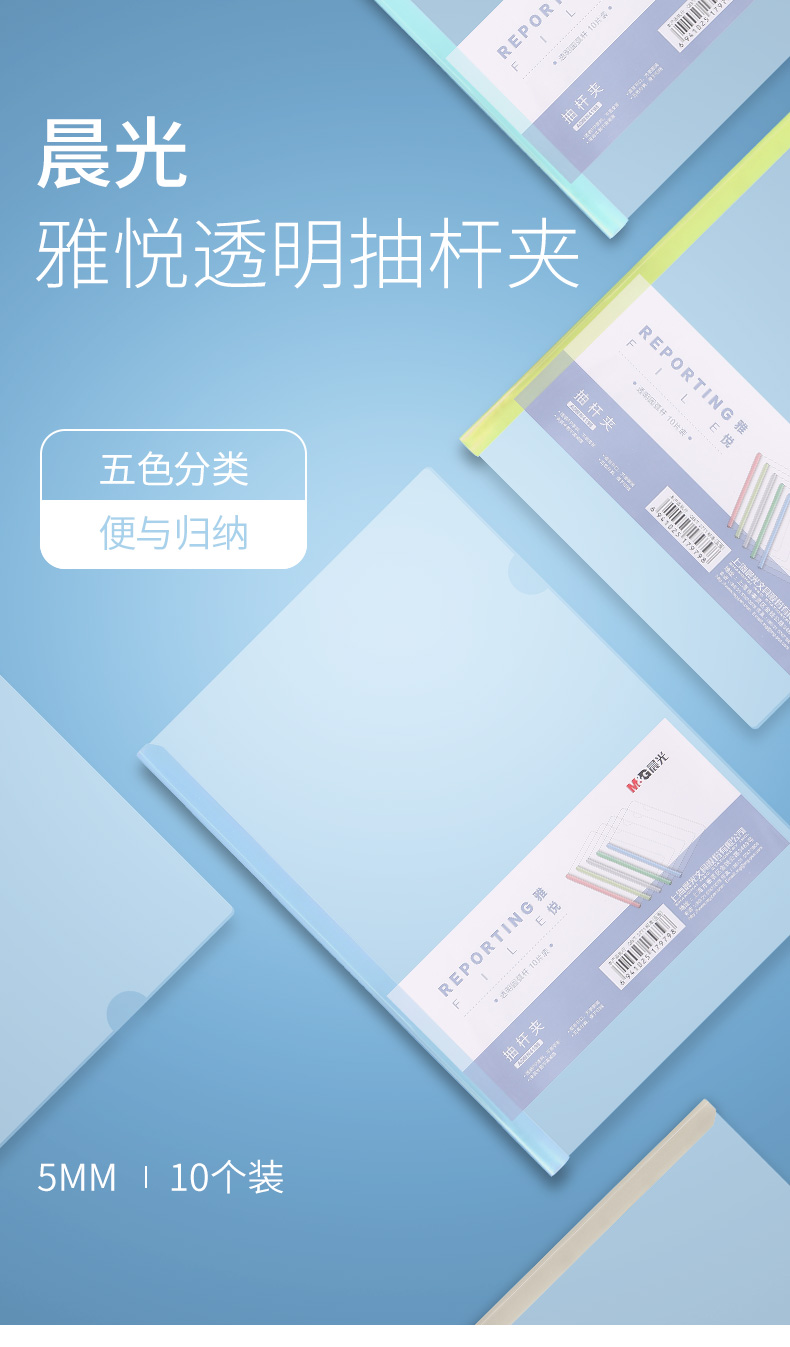 • 商品名称:晨光(M&G)雅悦系列A4/5mm透明彩色圆杆抽杆夹文件夹拉杆夹 10个装ADMN4198