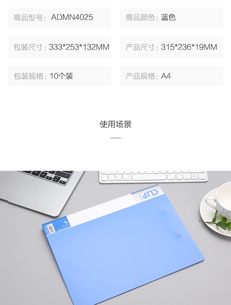 • 商品名称:晨光(M&G)睿智系列A4蓝色双强力夹资料文件夹 10个装ADMN4025
