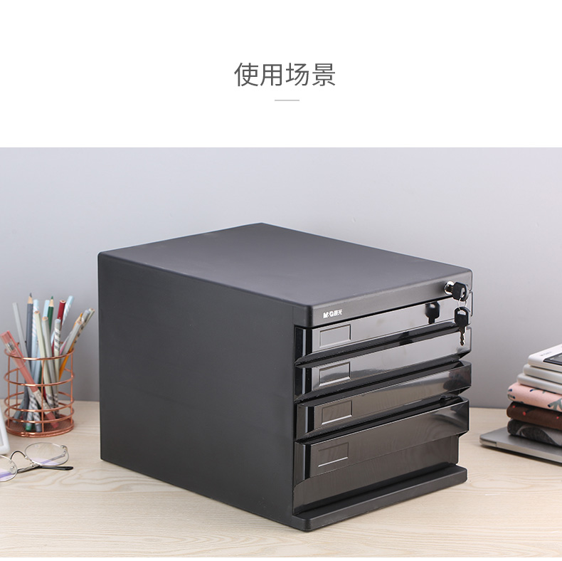 • 晨光(M&G)黑色四层桌面带锁文件柜资料收纳柜 单个装ADM95297