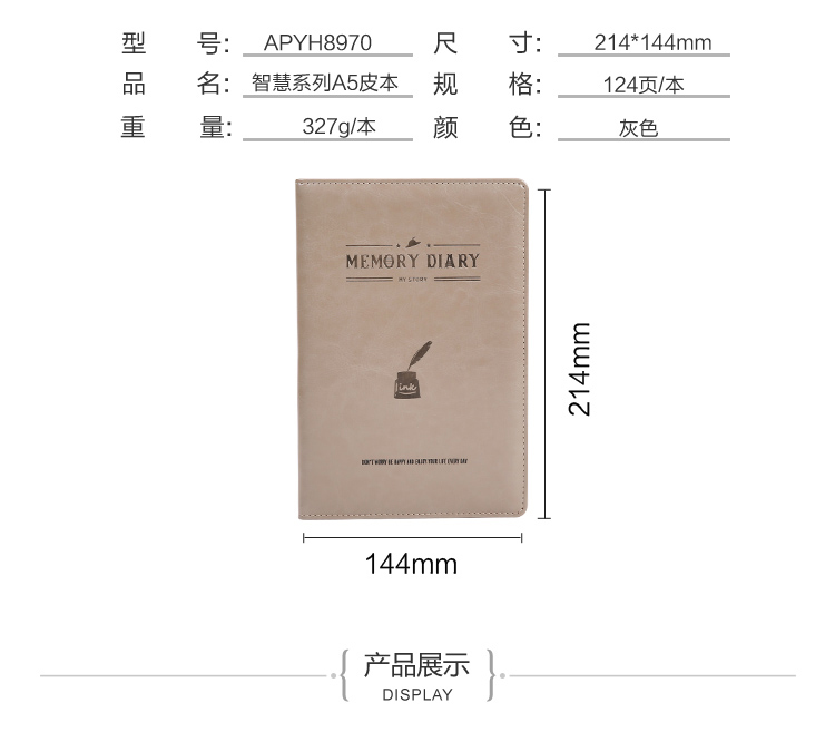 • 商品名称:晨光(M&G)A5/124页灰色皮面软抄本记事日记笔记本子 单本装APYH8970