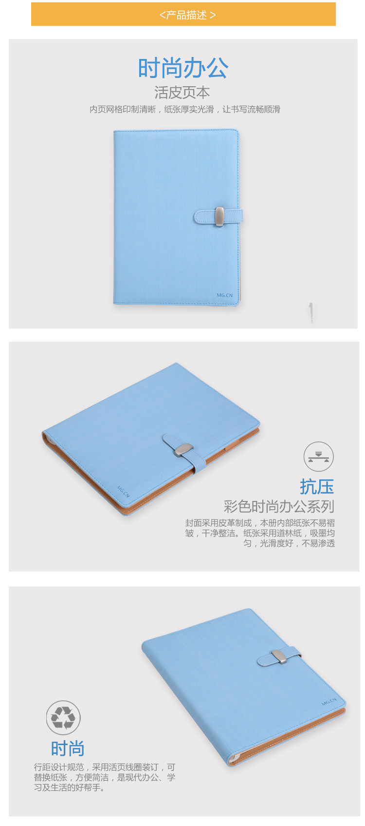 • 商品名称:晨光(M&G)B5/80页蓝色皮面活页本插扣皮革本商务记事笔记本子 单本装APYG3811