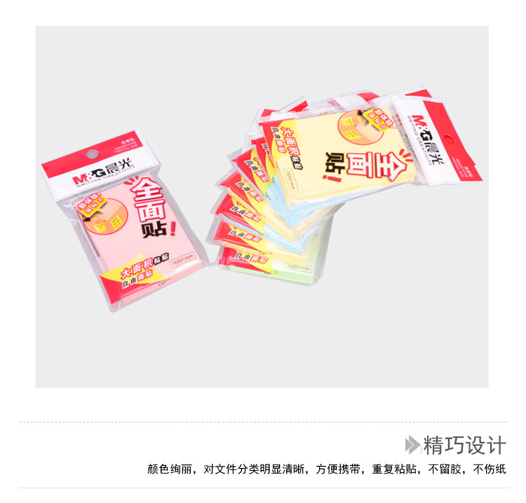 • 商品名称:晨光(M&G)76*51mm/80页百事贴N次贴彩色留言纸便利贴易事贴 8本装YS-152