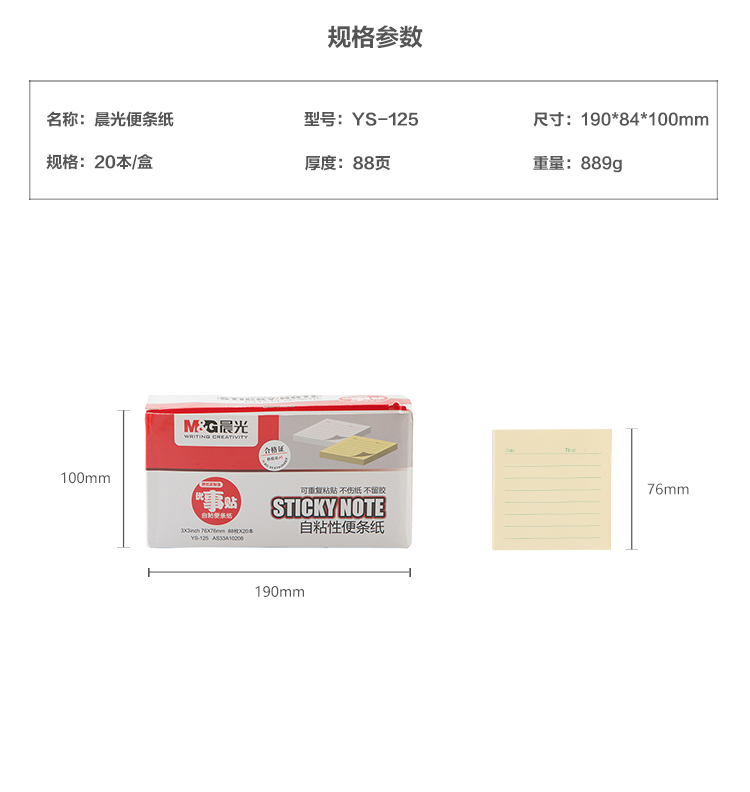 • 商品名称:晨光(M&G)76*76mm/88页百事贴N次贴彩色留言纸便利贴易事贴 20本装YS-125