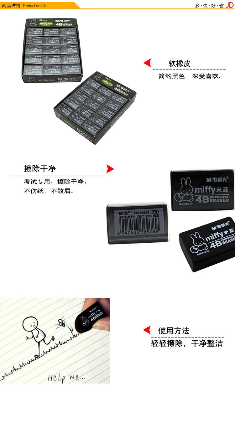 • 商品名称:晨光(M&G)FXP96312卡通学生考试美术绘图4B大橡皮擦30块装39*25*15mm