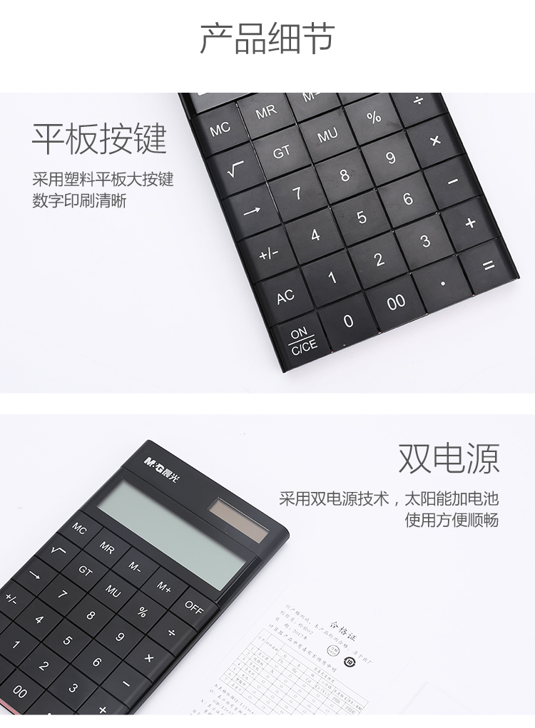 • 商品名称:晨光(M&G)时尚黑色无缝按键平板式计算器 双电源ADG98719